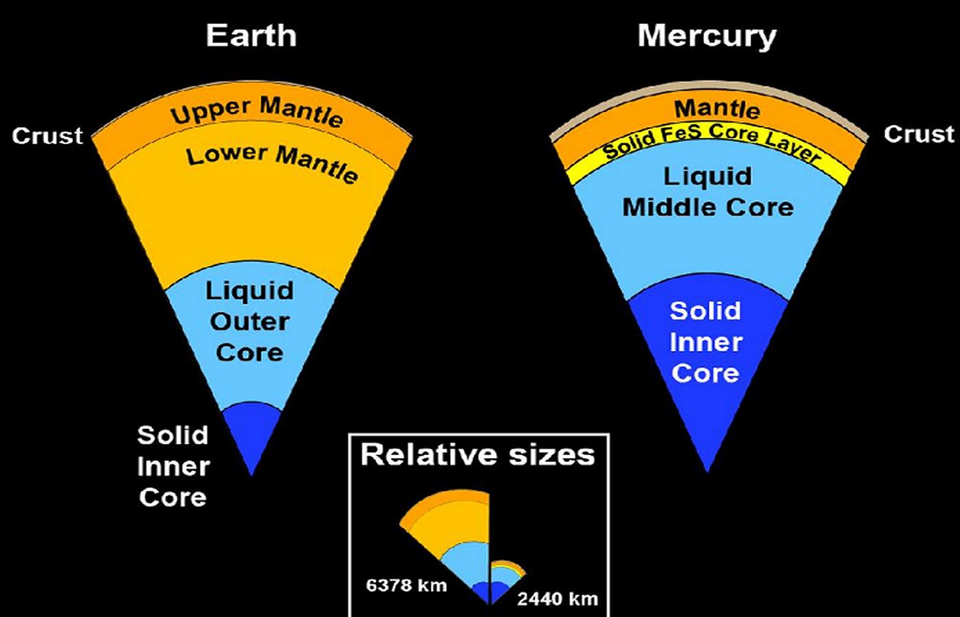 Der flüssige Kern bewirkt das Magnetfeld des Merkur, das genauer