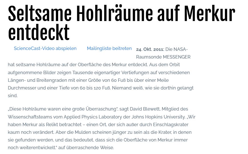 und ein Thema ist Wasser auf Merkur, das man in einigen Kratern am Pol