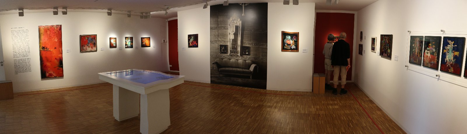 zu sehen. An den Wänden hingen zahlreiche Zeichnungen die oft nur