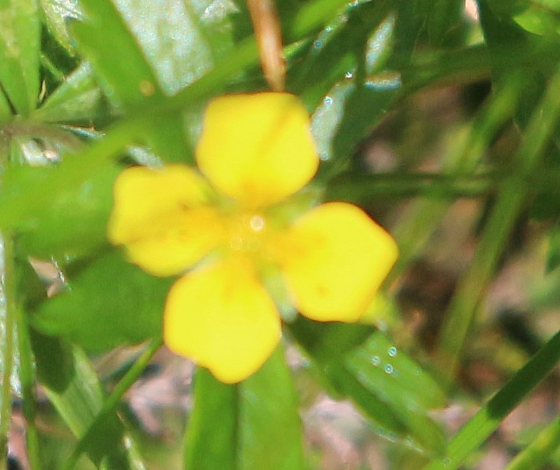 4-blättrige gelbe Blüten. Aus seiner roten Wurzel