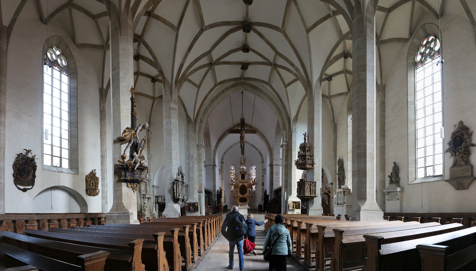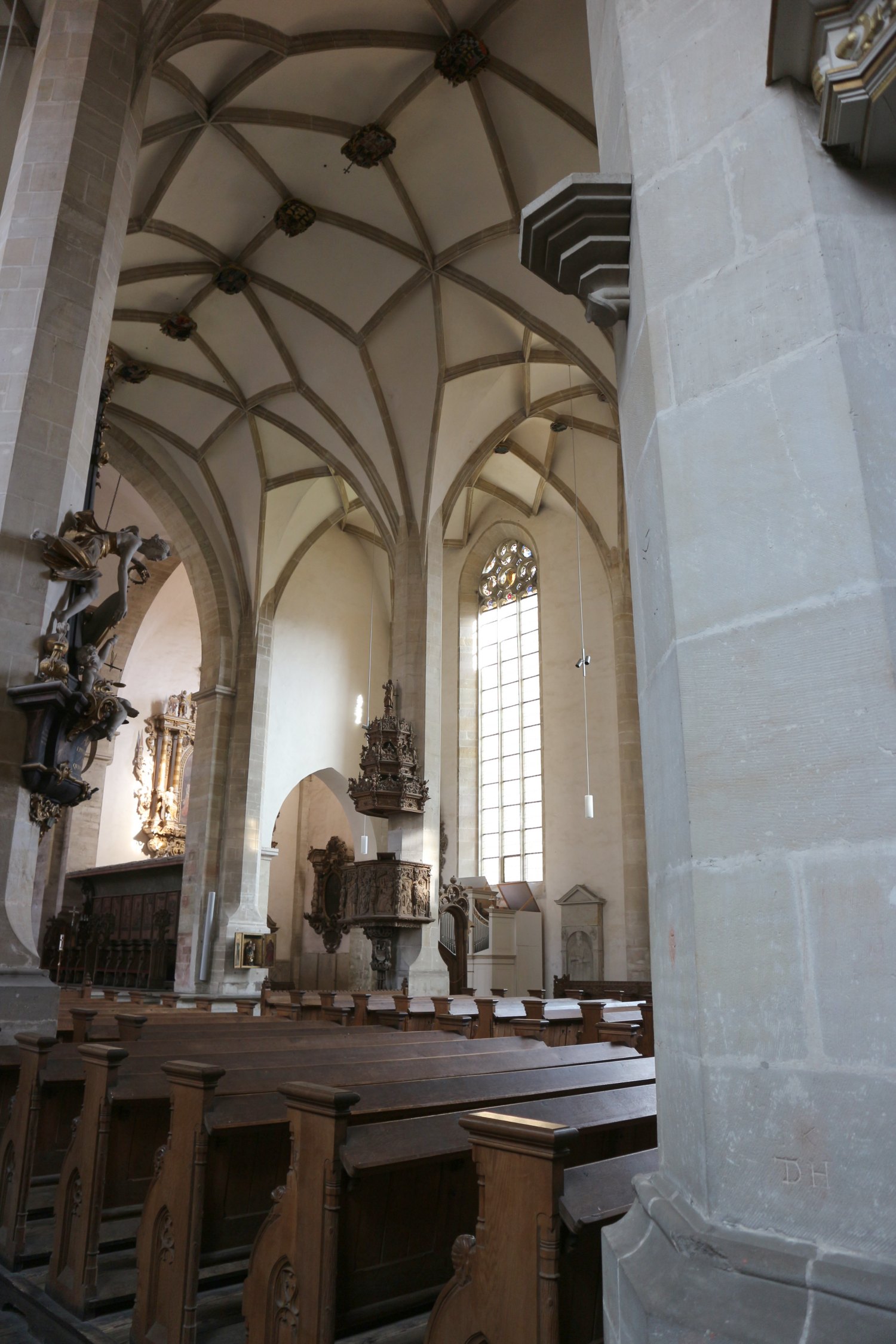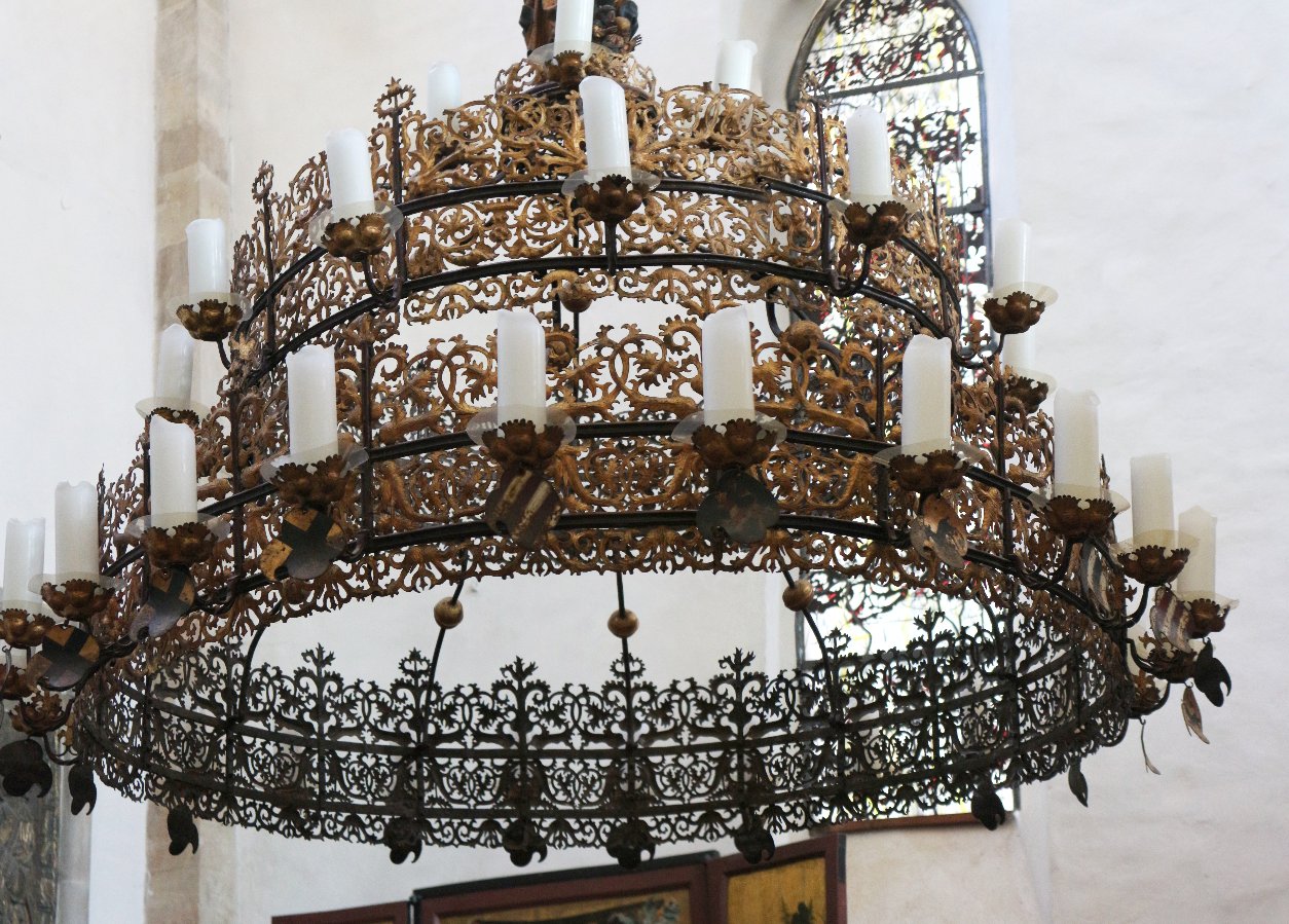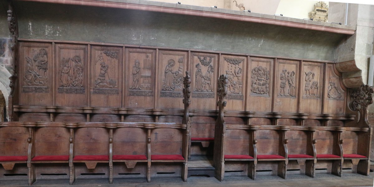 Radleuchter und ein gotisches Chorgestühl von 1446.