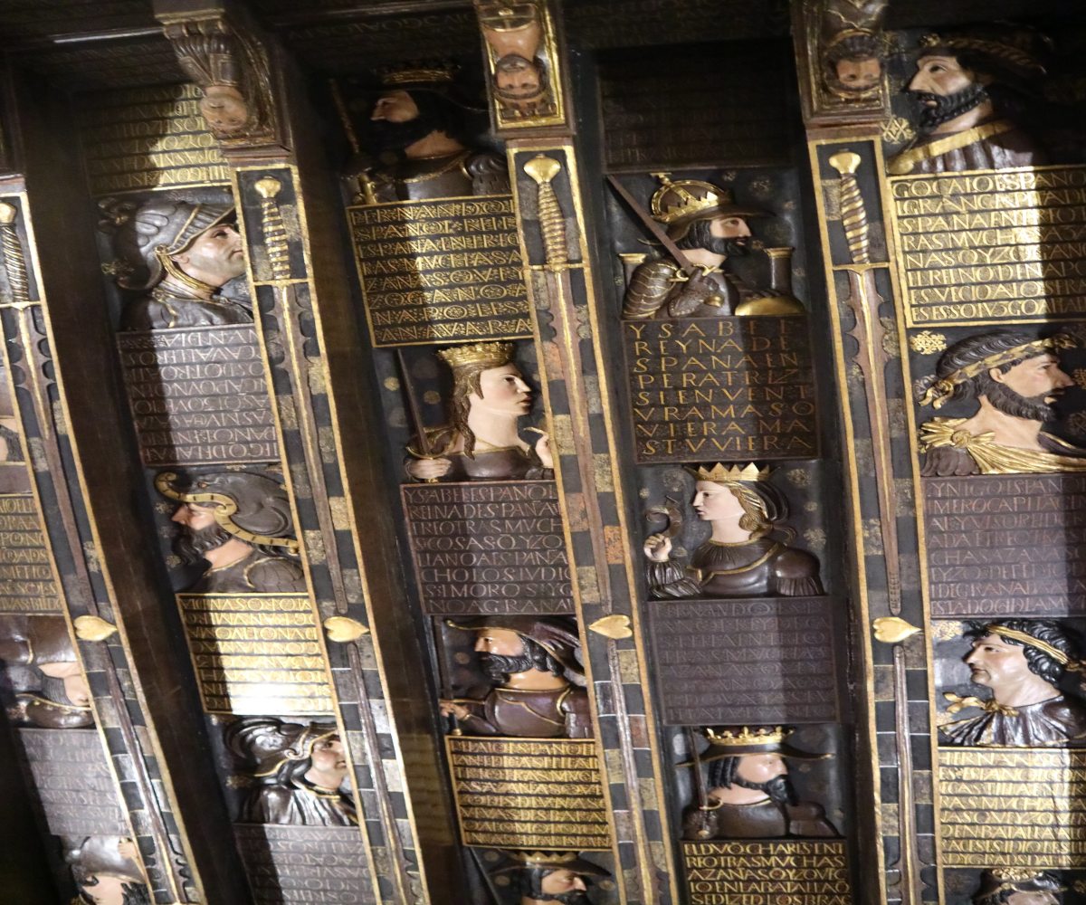Hauptsaals Cuadra Dorada und die plateresken Türen. Die Decke