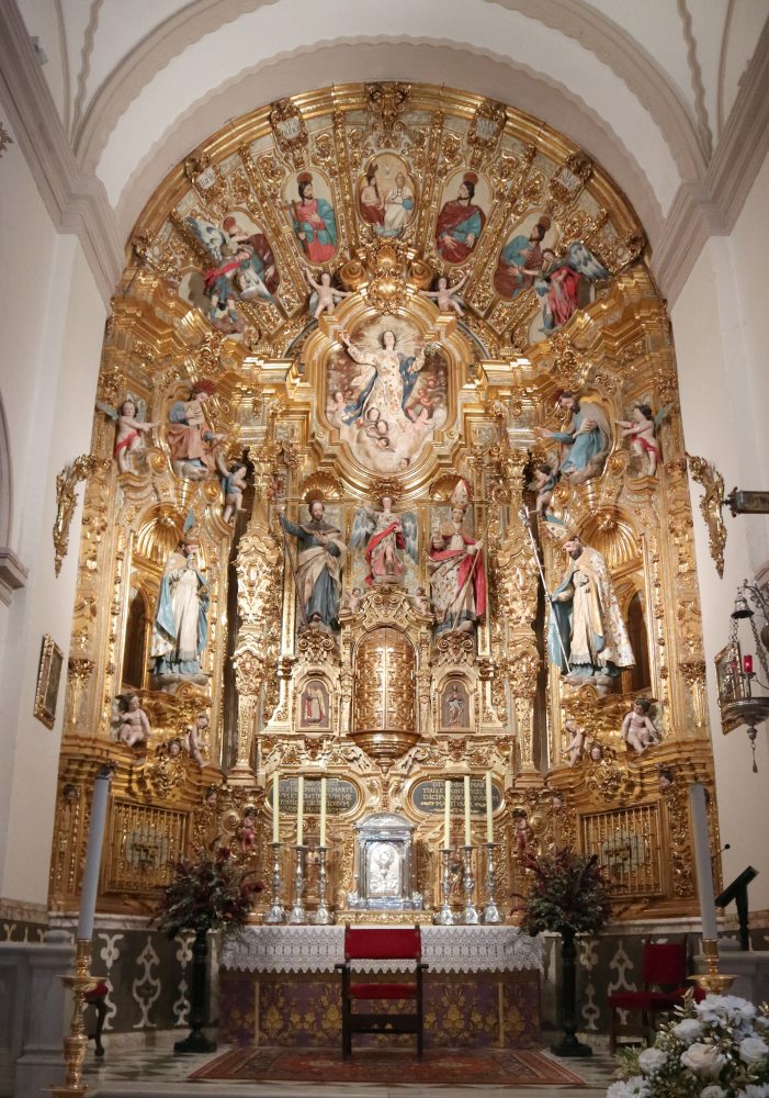 Der barocke Hochaltar ist wie in vielen Klöstern der Maria