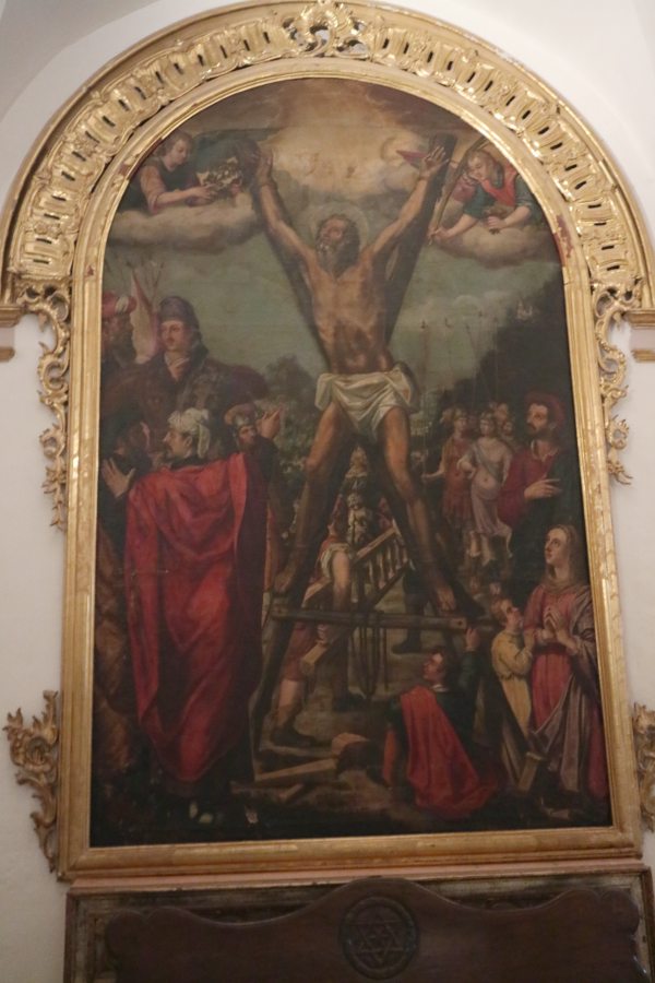 In der Kirche hing ein Gemälde mit dem Andreaskreuz.