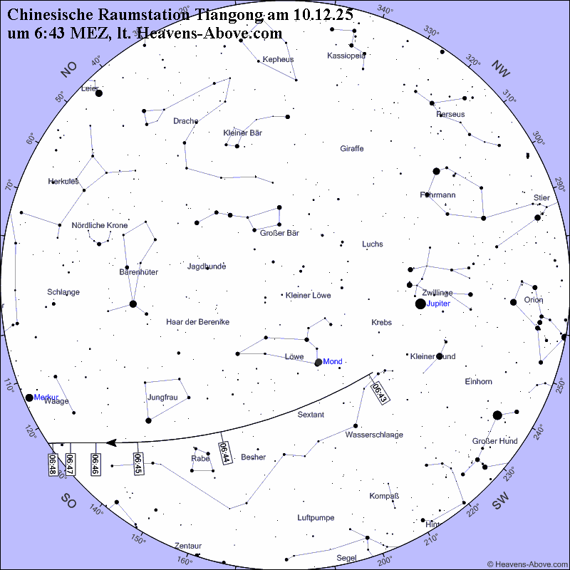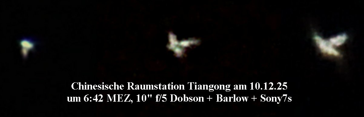 Am 10.12. um 6:42 Uhr trat die Tiangong aus des Erdschatten. Leider