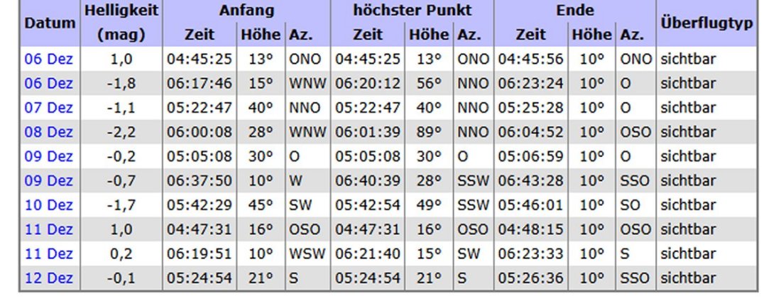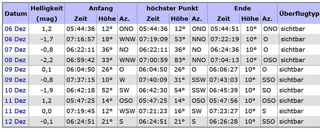 Die Raumstation bewegte sich zum Horizont und in etwa 30 Grad
