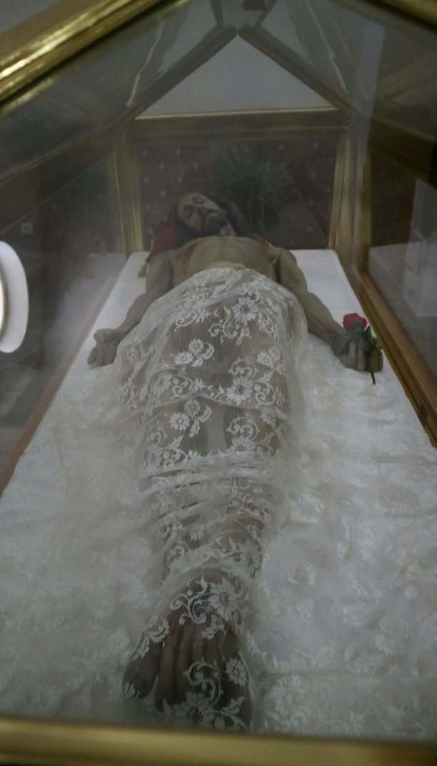 Jesus in einem Schneewittchensarg - ein ungewohntes Motiv.