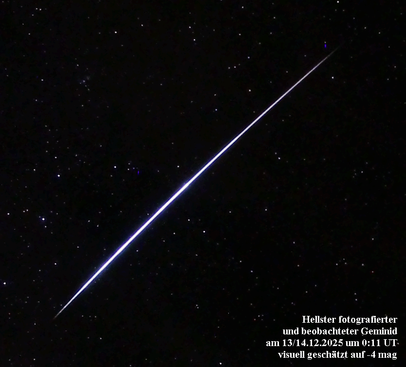 weiteres vergleichbar helles Exemplar. Dieser Geminid verursachte