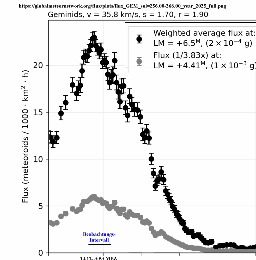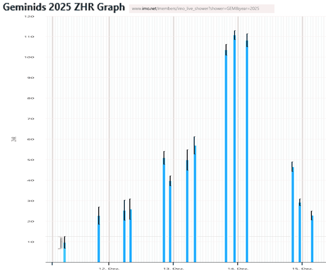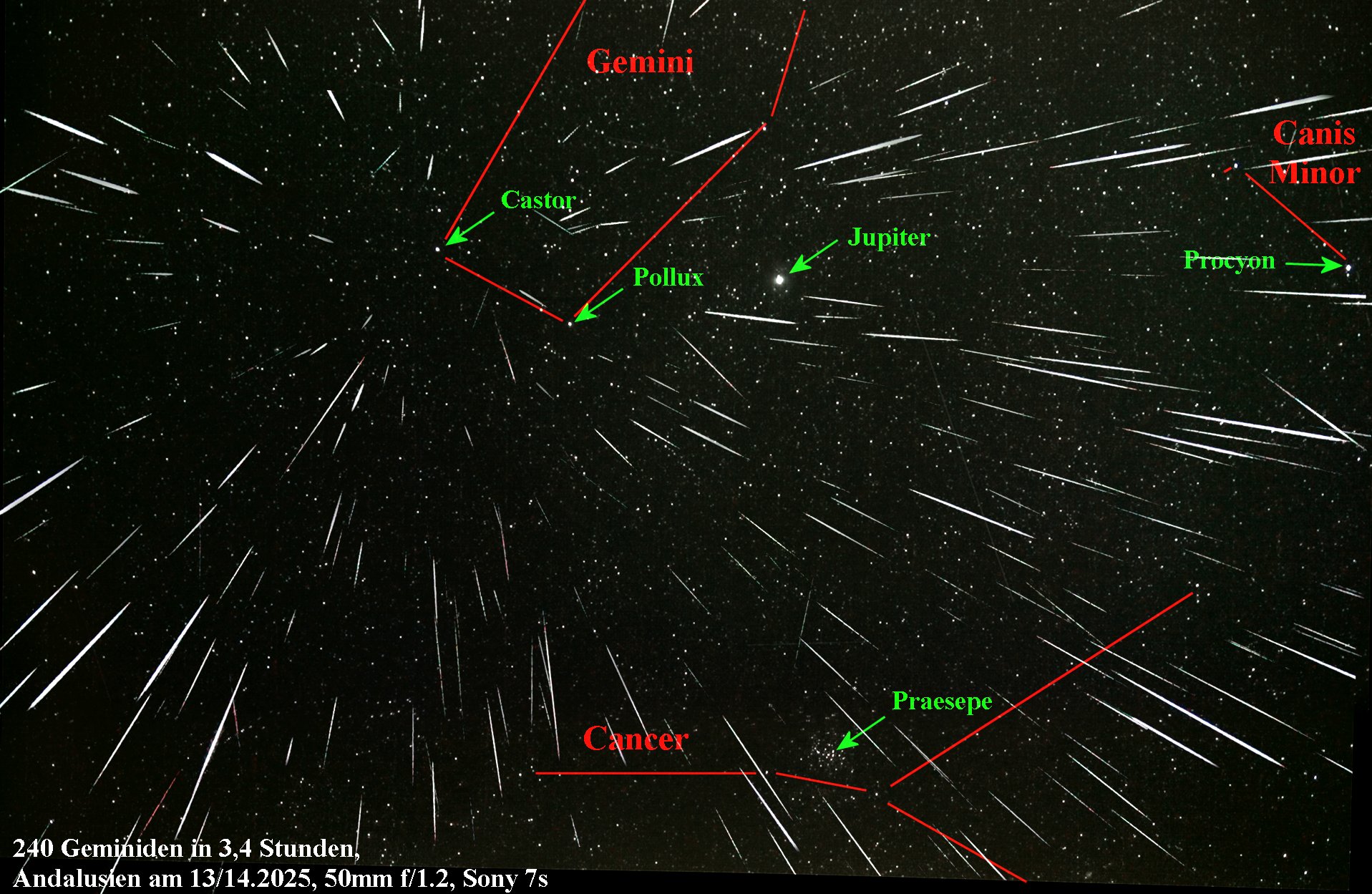dahin mit einem Fisheye 124 Geminiden aufzeichnen konnte.