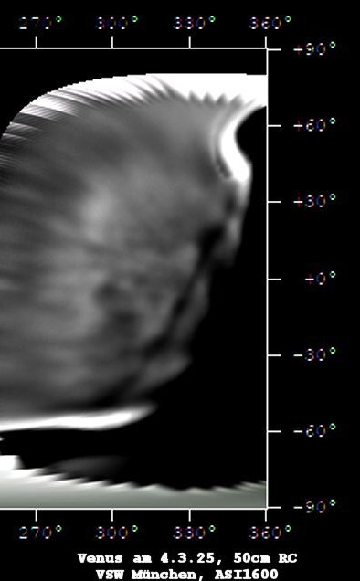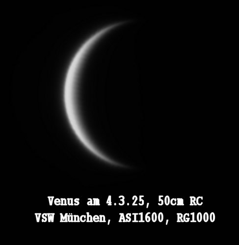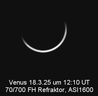 ihrer Unterern Konjunktion. Sie stand als schmale Sichel hoch am