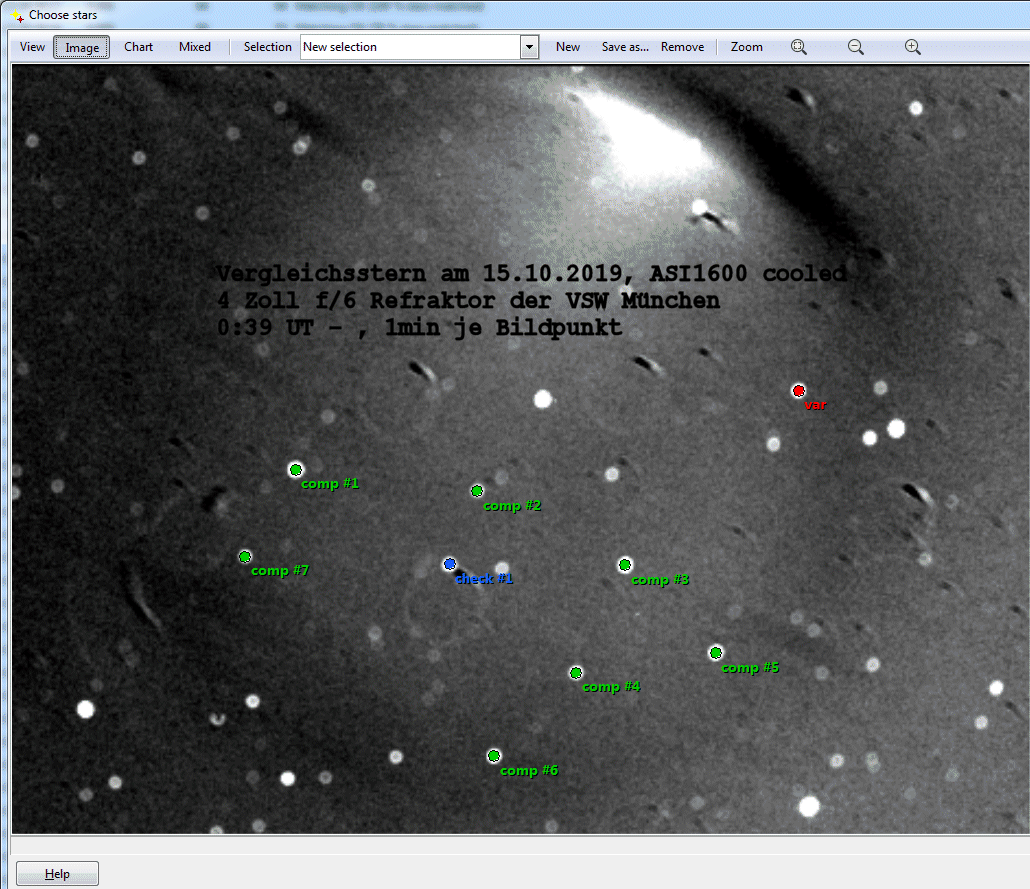 Vergleichssterne die im Kameragesichtsfeld liegen. Bei Helligkeiten
