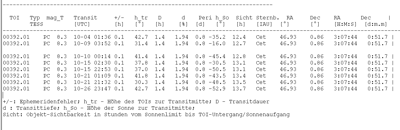 aber die interessantesten Transits von 00392.01-PC wurden