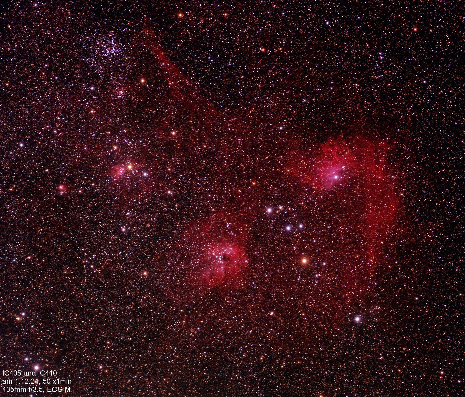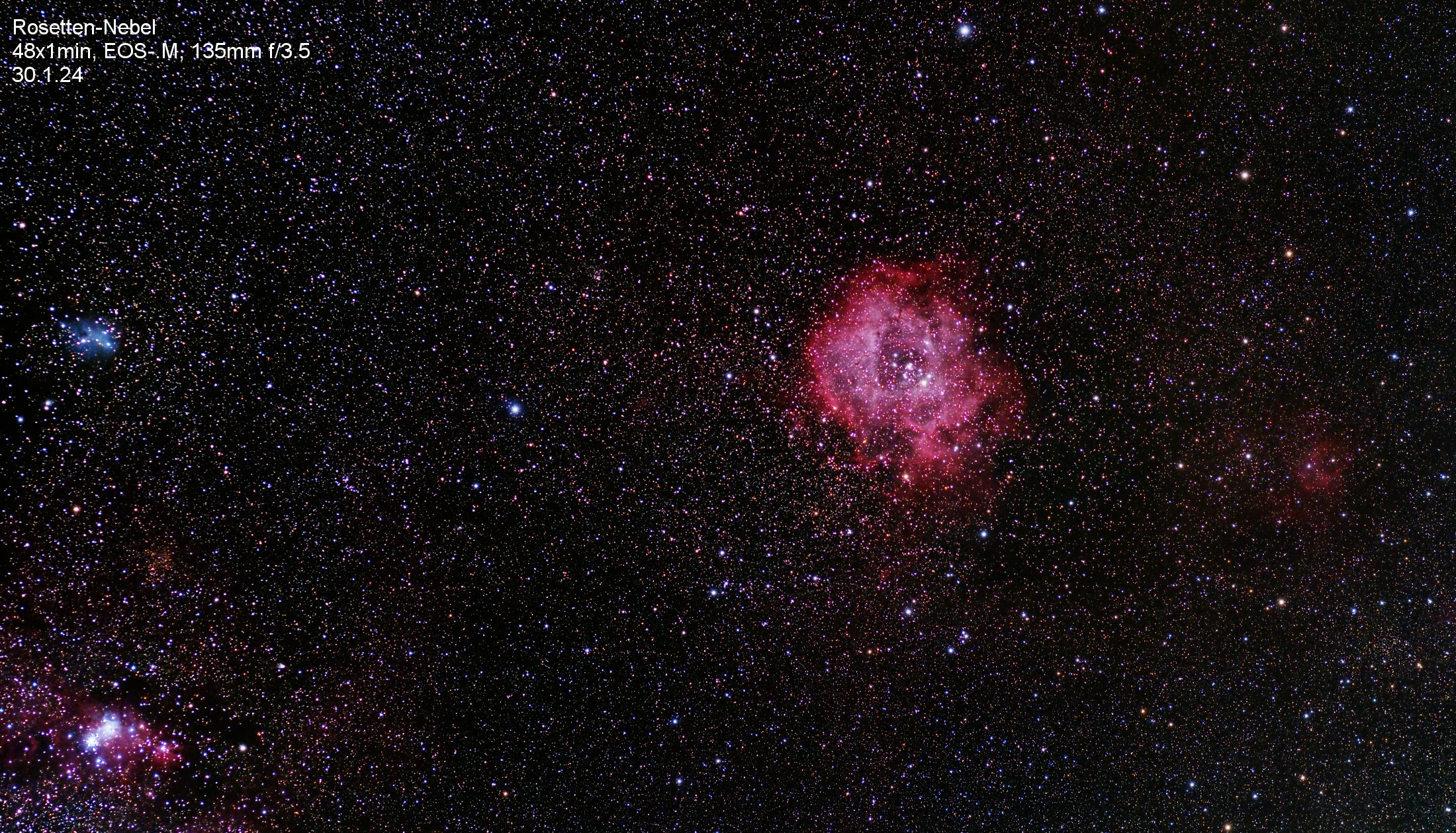Nicht beobachtet aber fotografiert wurden der Rosettennebel und die Region um IC405/410
