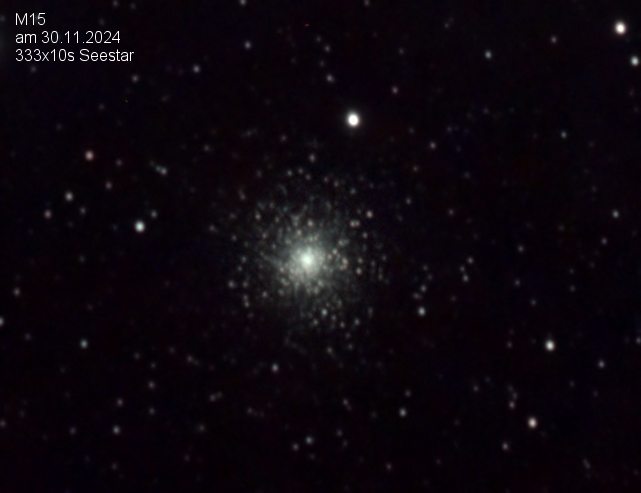 Nicht beobachtet aber mit dem Seestar eingestellt wurden M15, der