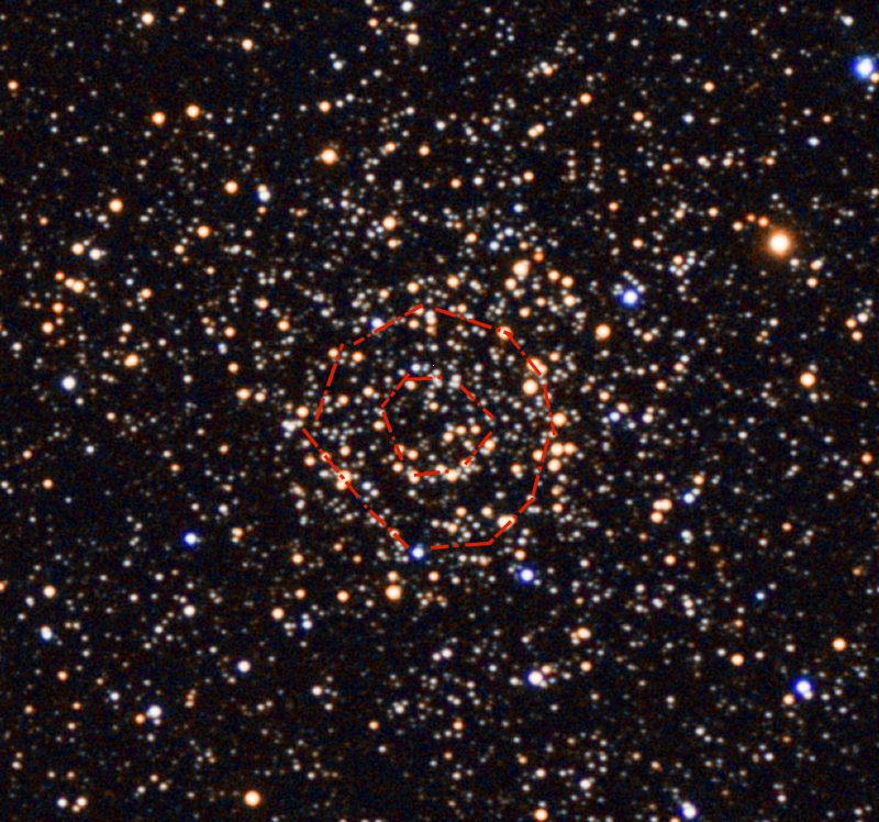 gibt es nochmal einen Ring hellerer Sterne der leicht dreieckig ist.