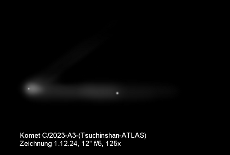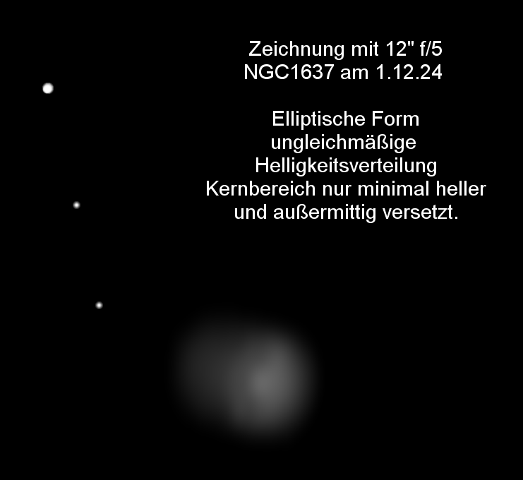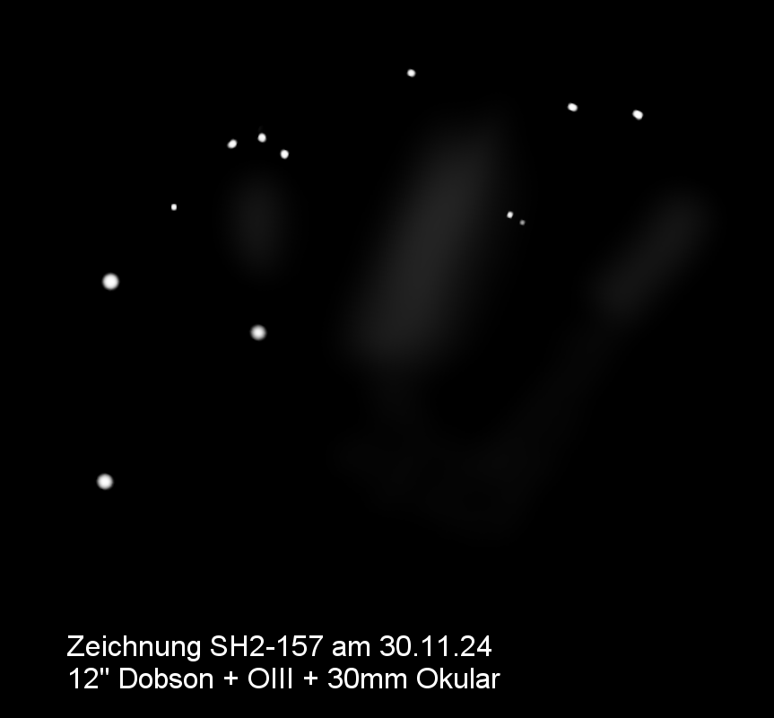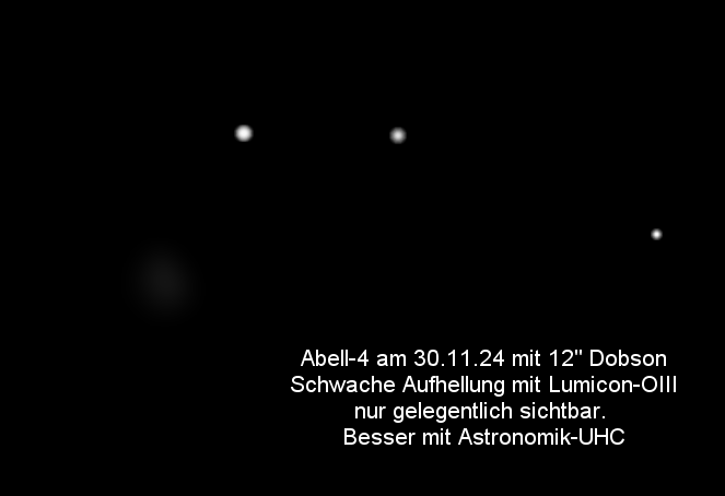 Abell-4 steht etwa 1 Grad daneben bei 2 Sternen mit etwa 9 mag. Mit 12"
