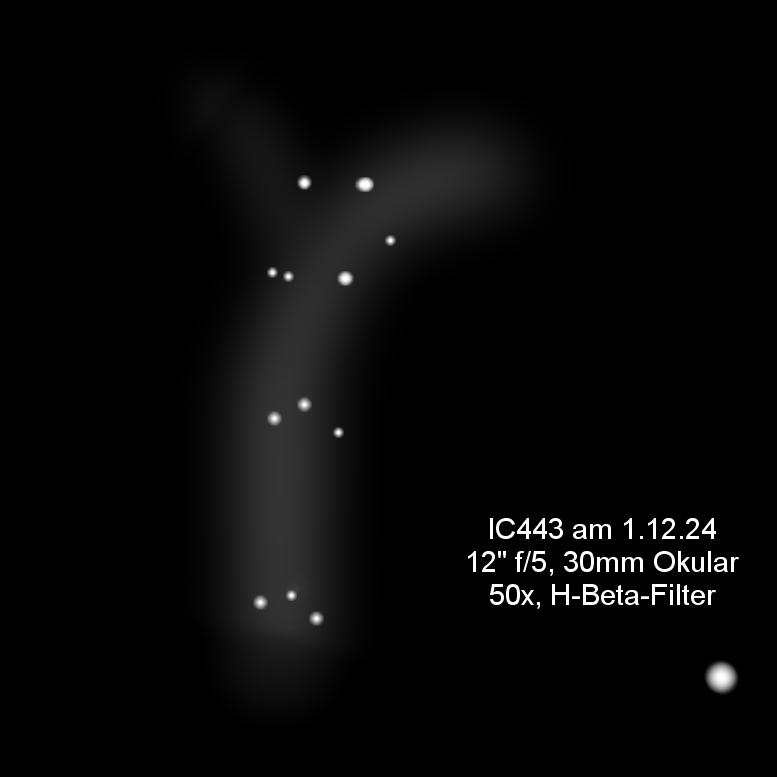 Als Low-Power-Objekt wurde IC443 eingestellt. Der als Quallennebel