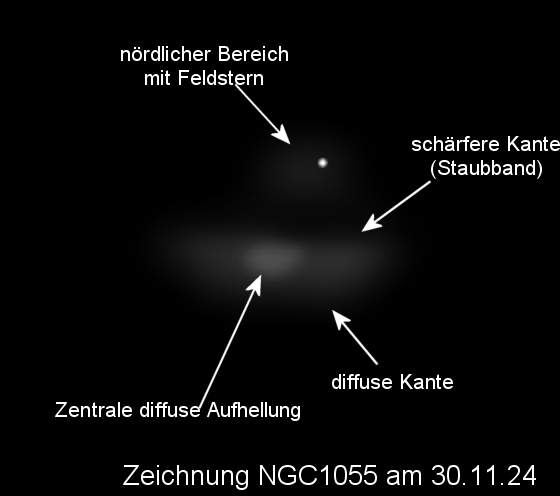 schwache Objekte erschienen ideal. NGC1055 zeigte im 12-Zöller
