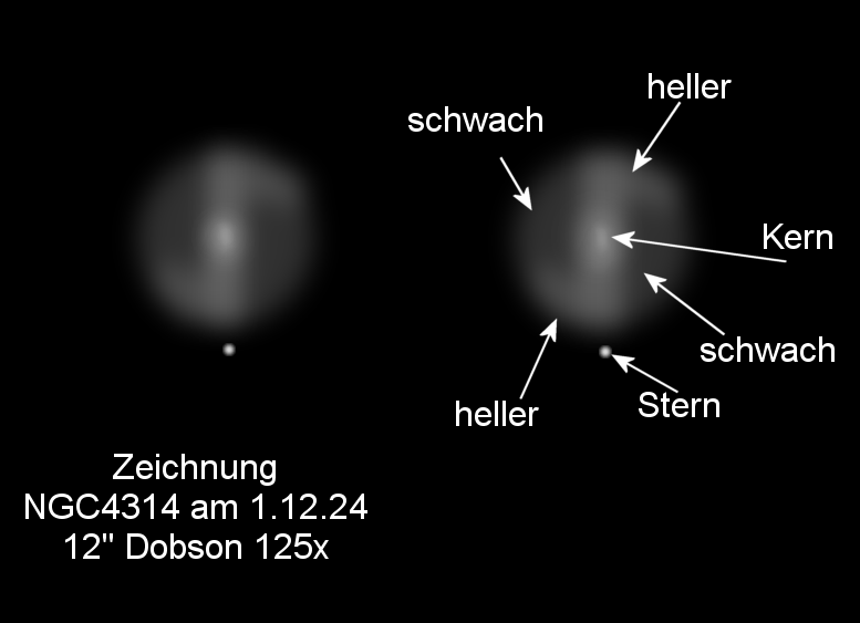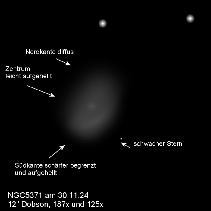 Die Galaxie hat Struktur, die aber im 12-Zöller schwer zu