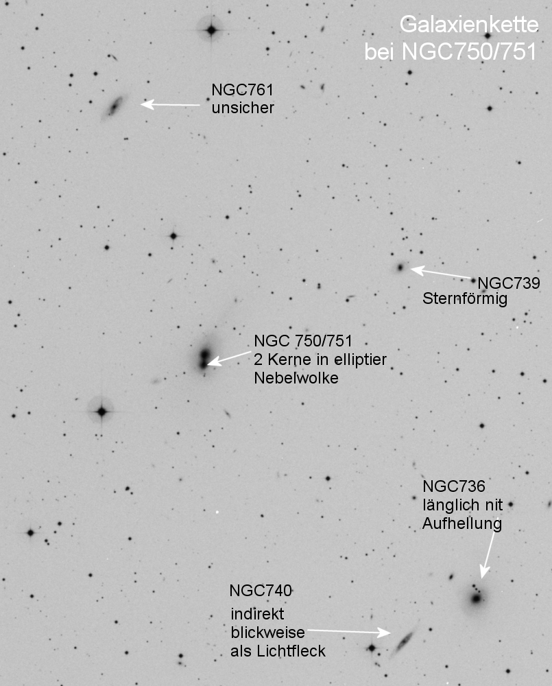 Im Umfeld gibt es weitere Galaxien, die von Nord nach Süd eine