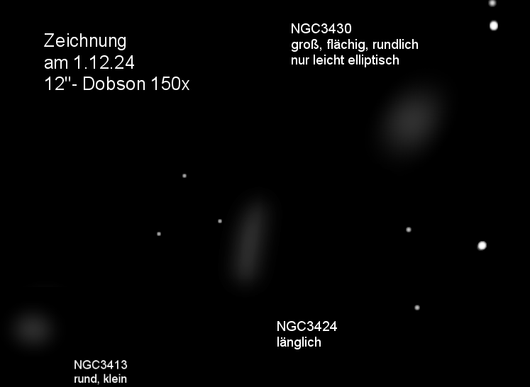 NGC3413 ist flächenschwach und leicht elliptisch. Bei allen 3