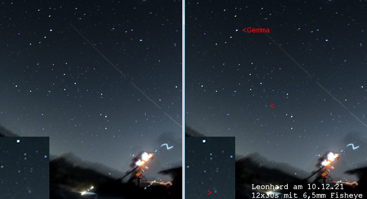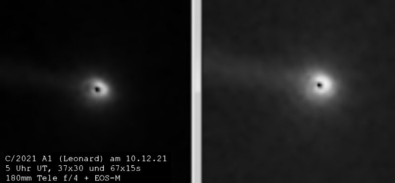 Komet Leonhard war am 10.12.2921 in der früh gut zu sehen.