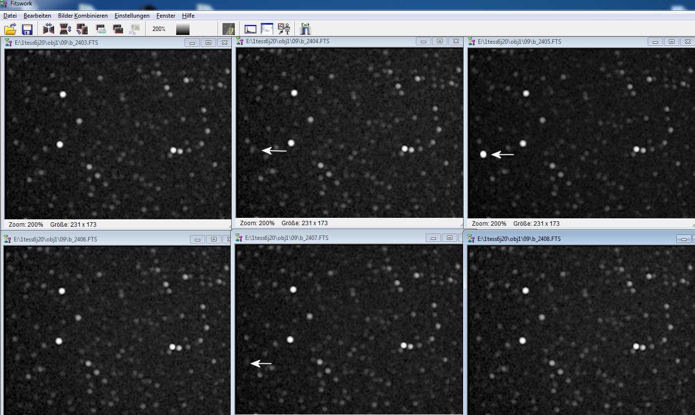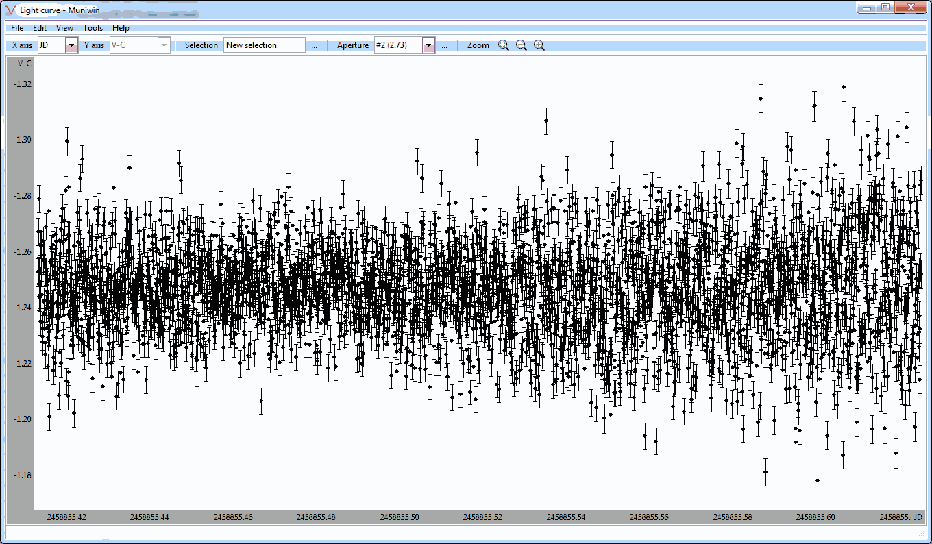Die geringste Streuung gab es bei einer Messung gegen den unmittelbaren Nachbarstern. Hier könnte man mit etwas Phantasie eine Amplitude von 0,003 hineininterpretieren.