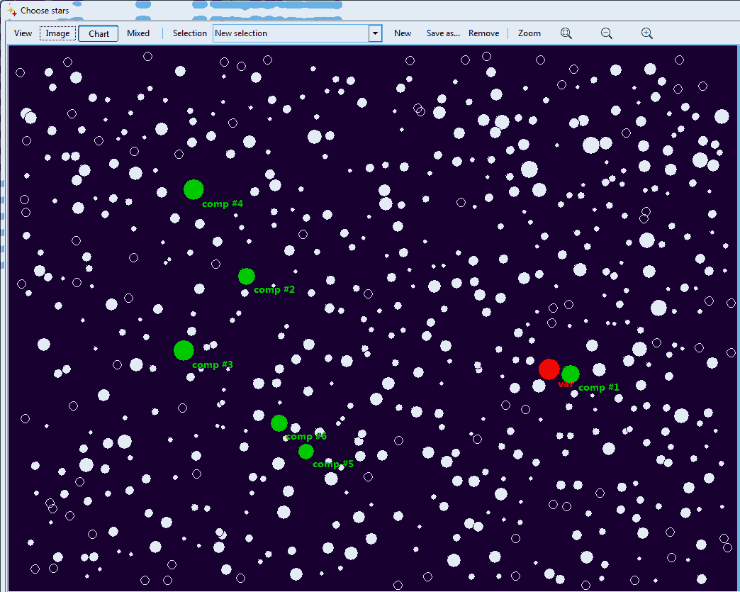 ausreichend vergrößern um 2 gleichhelle Vergleichsssterne mit