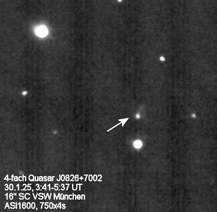 4-Fach-Linse mit bis zu 6" Abstand. Der 4-fach Quasar J0826+7002 wird