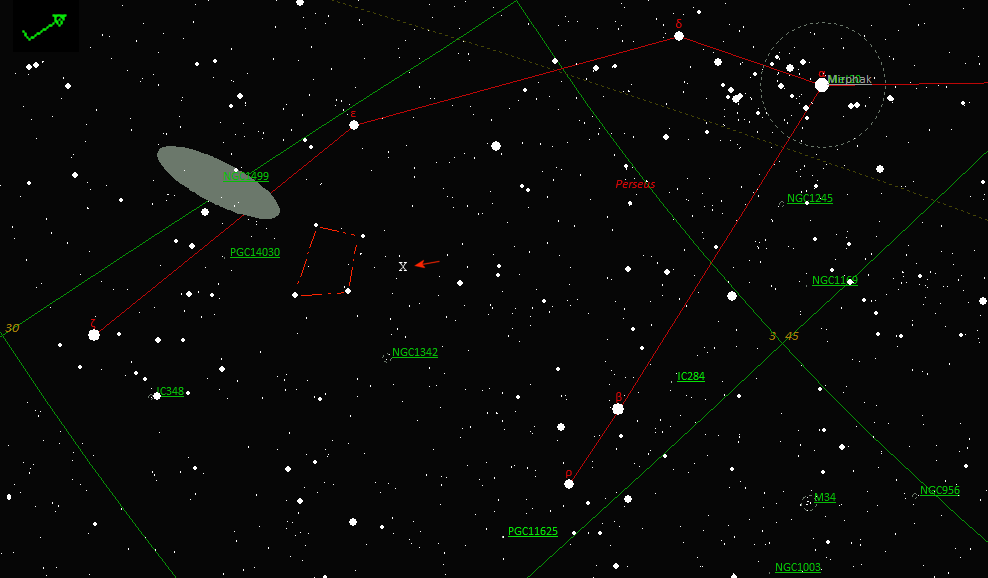 Der Stern war mit 11,7mag relativ hell und im Sternbild Perseus einfach