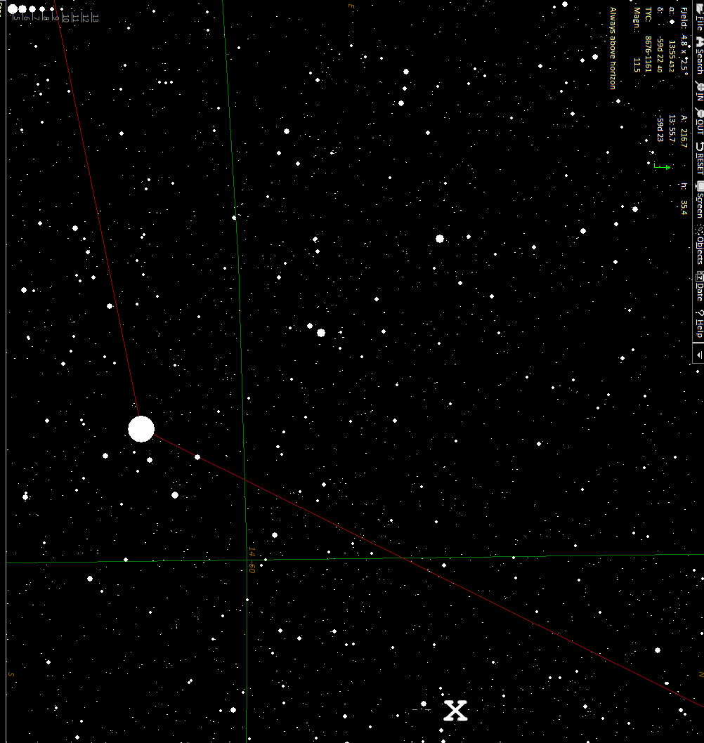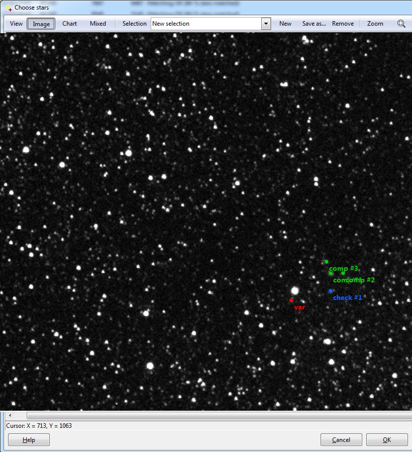 Hier noch eine Ausschnittsvergrößerung mit dem Zielstern und den Vergleichssternen.
