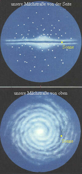 Die Zeichnung unten links verdeutlicht den Aufbau unseres Sternensystems.