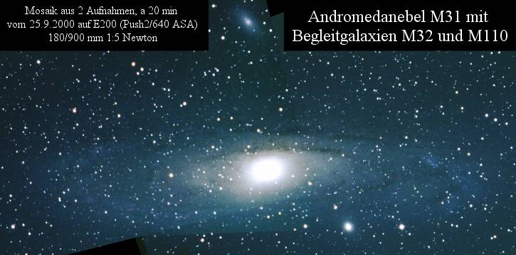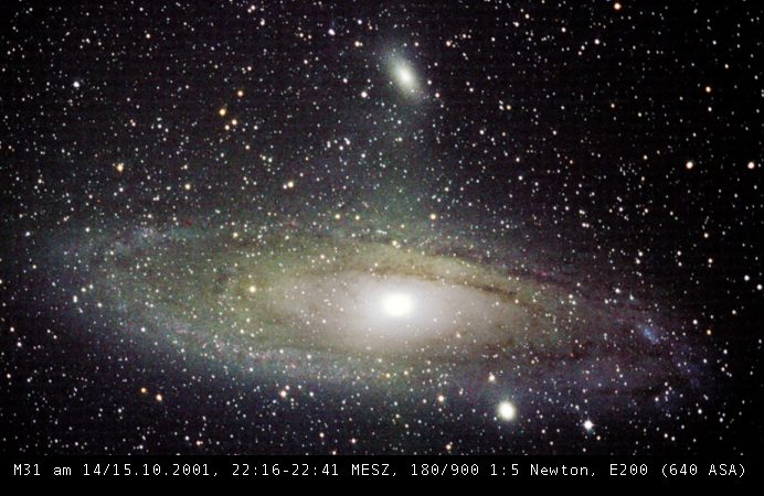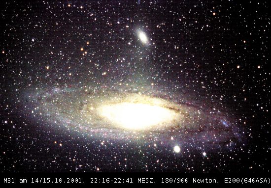 der bekannte Andromedanebel, bietet uns nur eine gekippte Seitenansicht (unten 43kb).