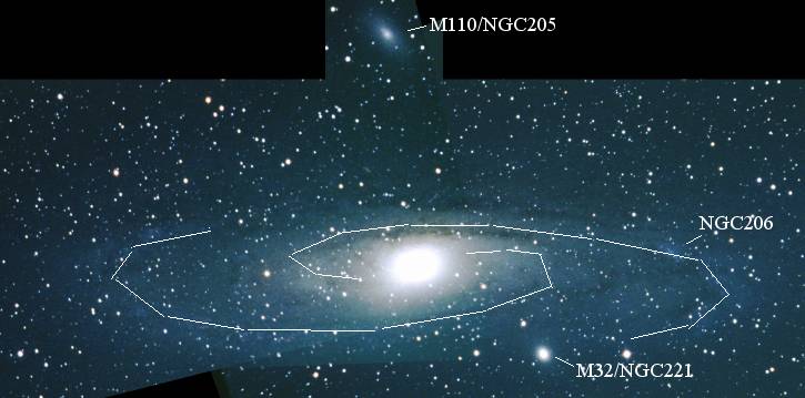 zwei Begleitgalaxien abgebildet. Mit M110 gibt es eine starke Wechselwirkung. Zwischen