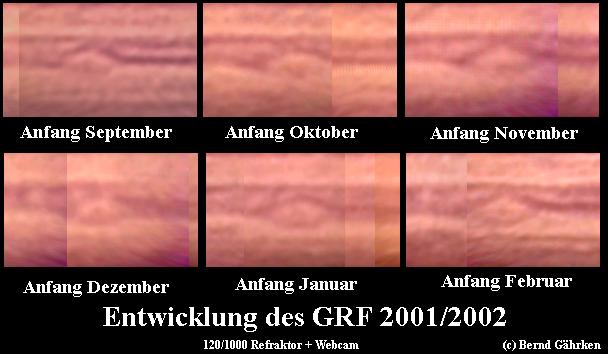 'White Oval Spot' (WOS) der sich langsam dem GRF nähert und mit