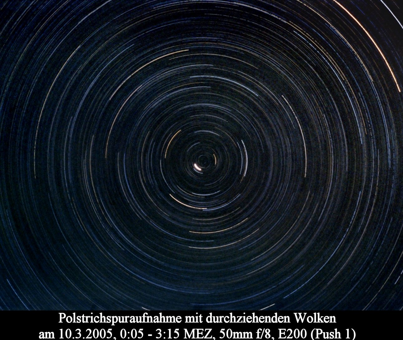 Die kleinen Lücken in den Strichspuren wurden durch vorbeiziehende Wolken verursacht.