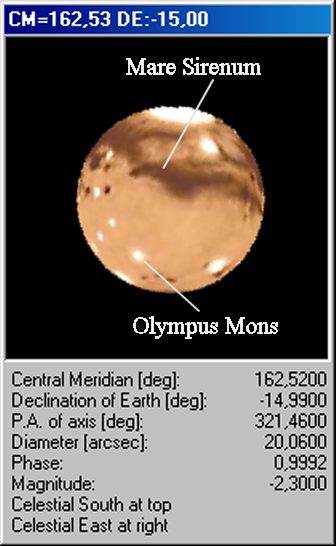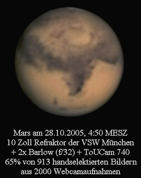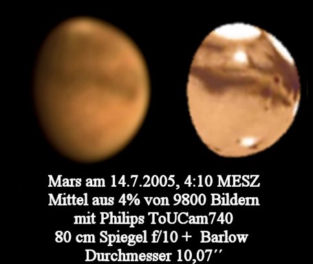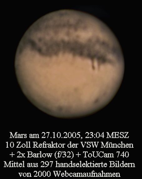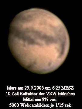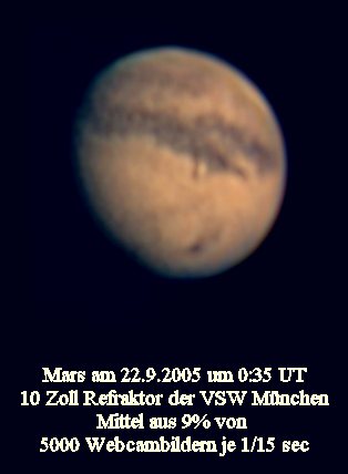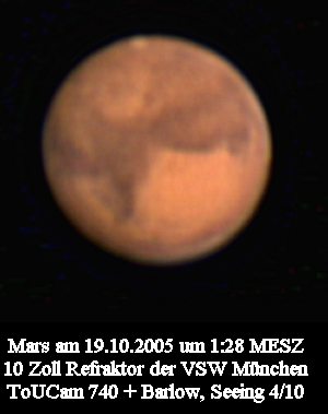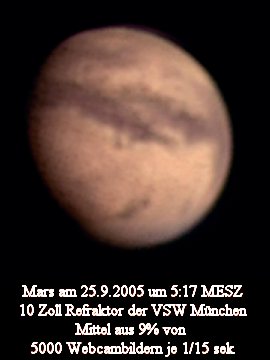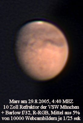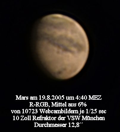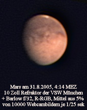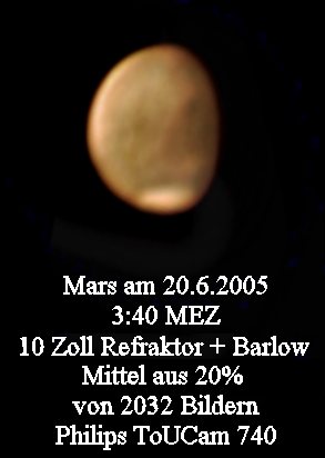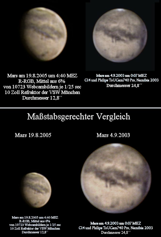 Mars hat mit ca. 20 Bogensekunden im Jahre 2005