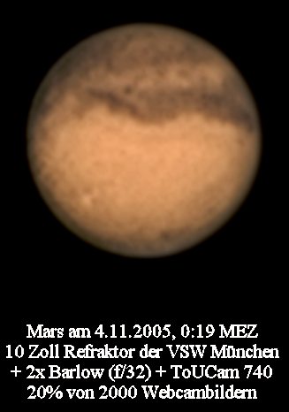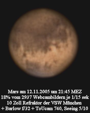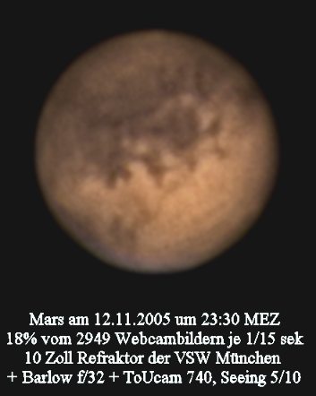Am 12.11.05 war das Seeing zwar nur mittelmäßig, aber