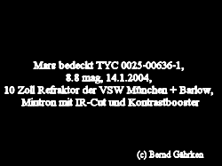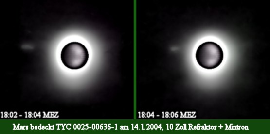 Am 14.1. kam es zu einer seltenen Sternbedeckung durch den Planeten Mars.