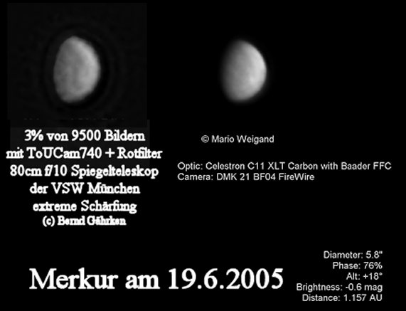 Merkur und Venus wurden mit dem 80cm Spiegelteleskop der VSW München aufs Korn