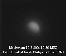 Wenn man genau hinschaut ist die Sichelform des Merkur zur erkennen.