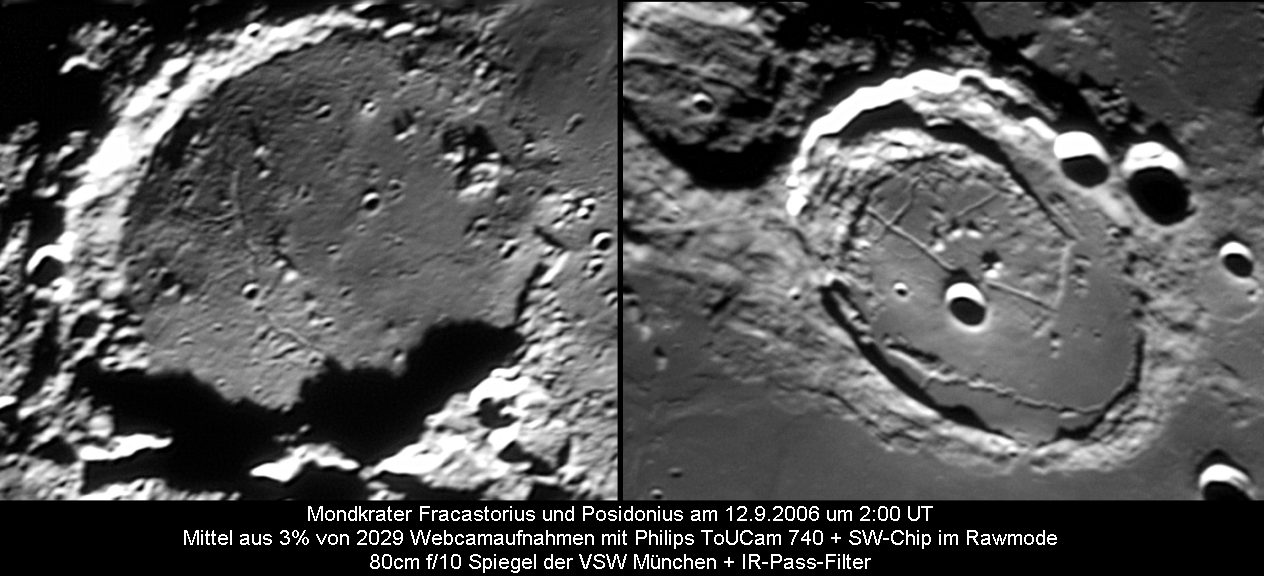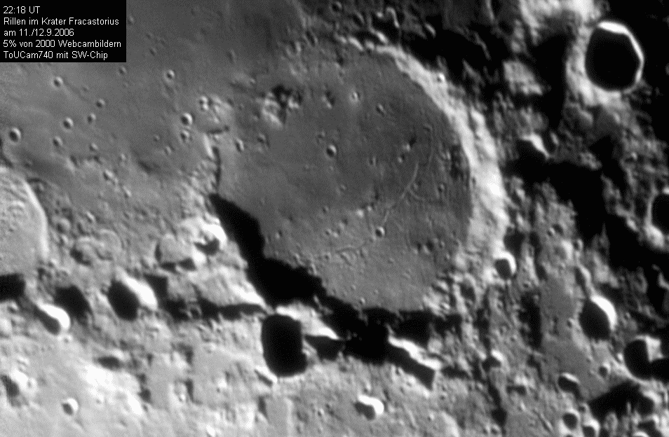 Seltener fotografiert wird der Krater Fracastorius. Auf seinem Boden ist eine