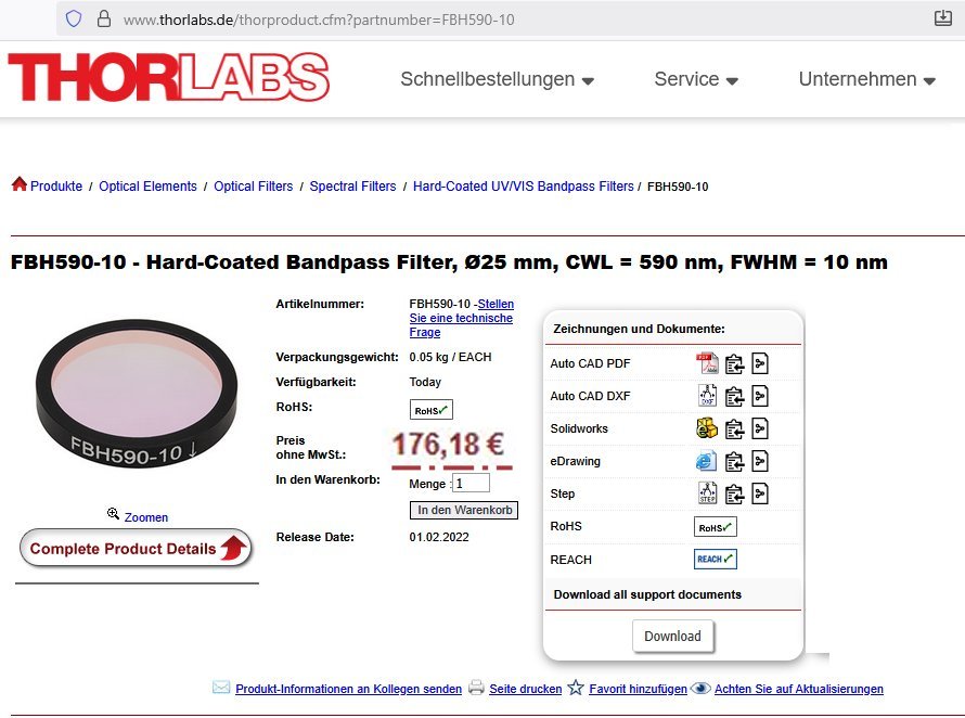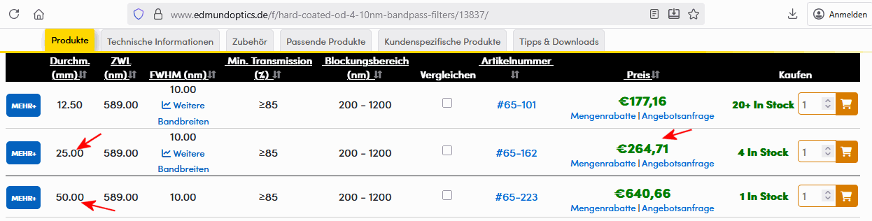 Aktuell gibt es einen 10nm Filter ´relativ günstig´