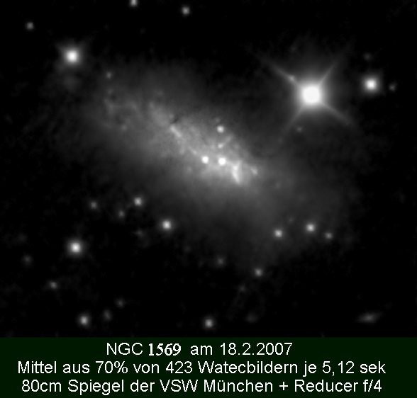 Am 18.2.2006 stand NGC1569 erneut auf dem Programm. Das Seeing war recht gut, doch leider