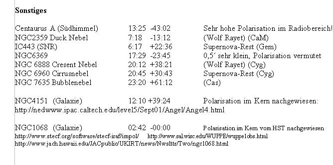 Liste der Objekte des Polarisationsprojektes als RTF-Dokument