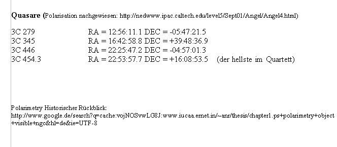 Als beim Crabnebel Polarisation nachgewiesen werden konnte, wurden einige Supernovareste aufgenommen.
