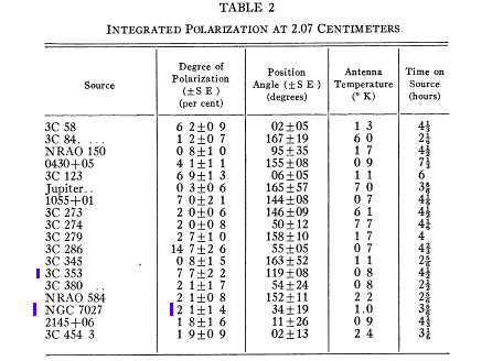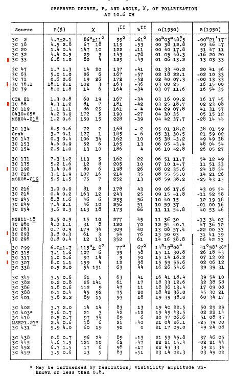 prozentuale Anteil des polarisierten Radiolichts. Objekte