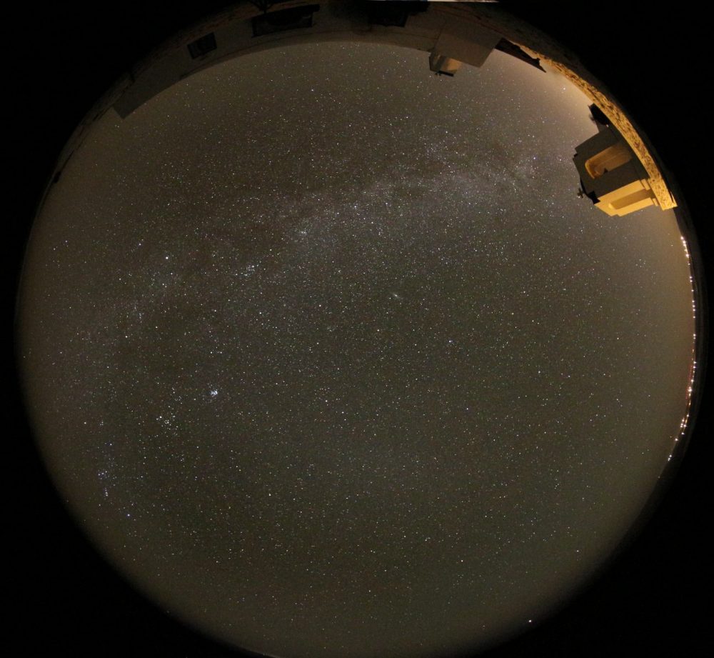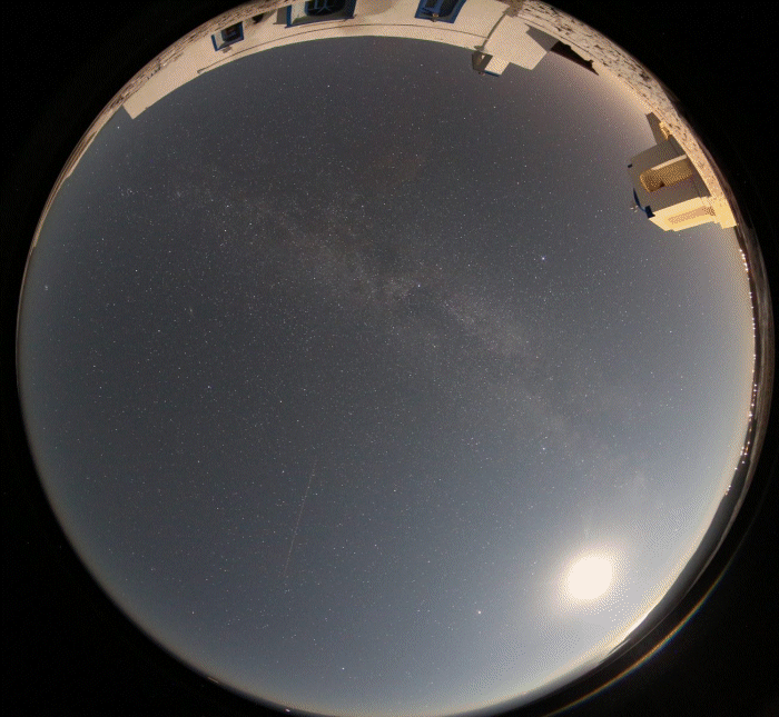 All-Sky-Fisheye-Aufnahme bei Mondschein am Beobachtungsort des
