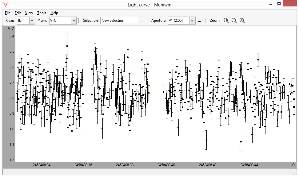 wurde versucht die 1.5% Amplitude eines 8mag Exoplanetensterns der