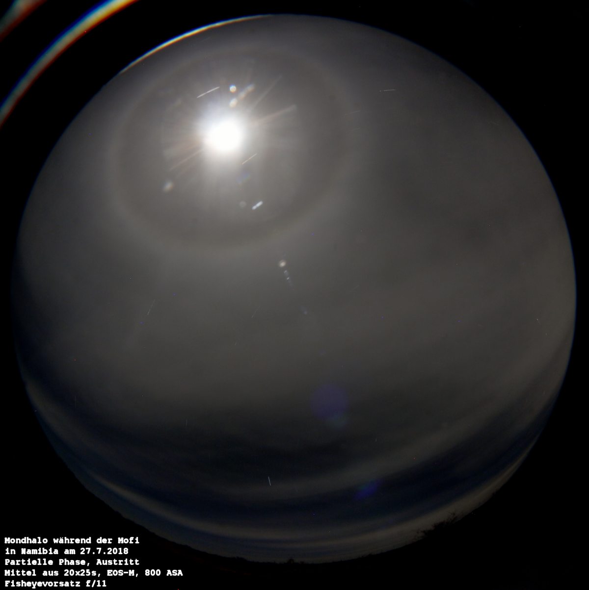 Während des Austritts gab es ein paar Cirren die ein schönes 22 Grad-Halo produzierten. Während der Messung zur Totalität war der Himmel jedoch perfekt klar.